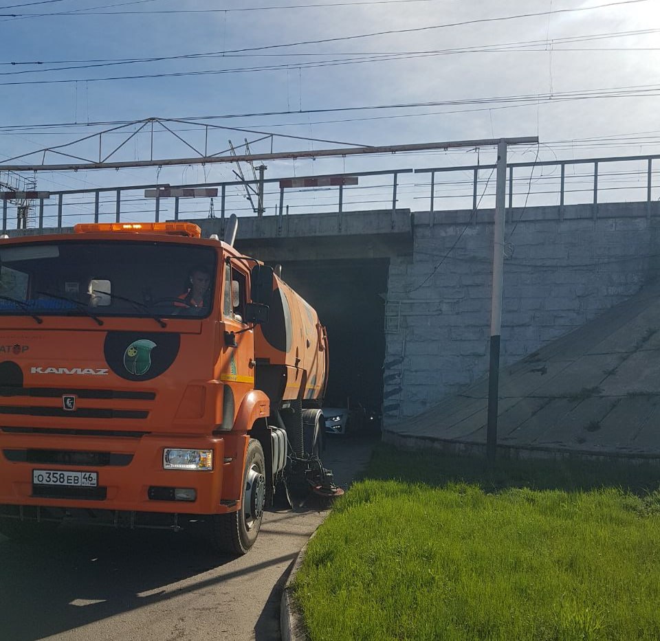 Днем 15 апреля дорожники убирают на участках автомобильных и пешеходных зон пыль и грязь. Рабочие приводят в порядок остановочные комплексы.