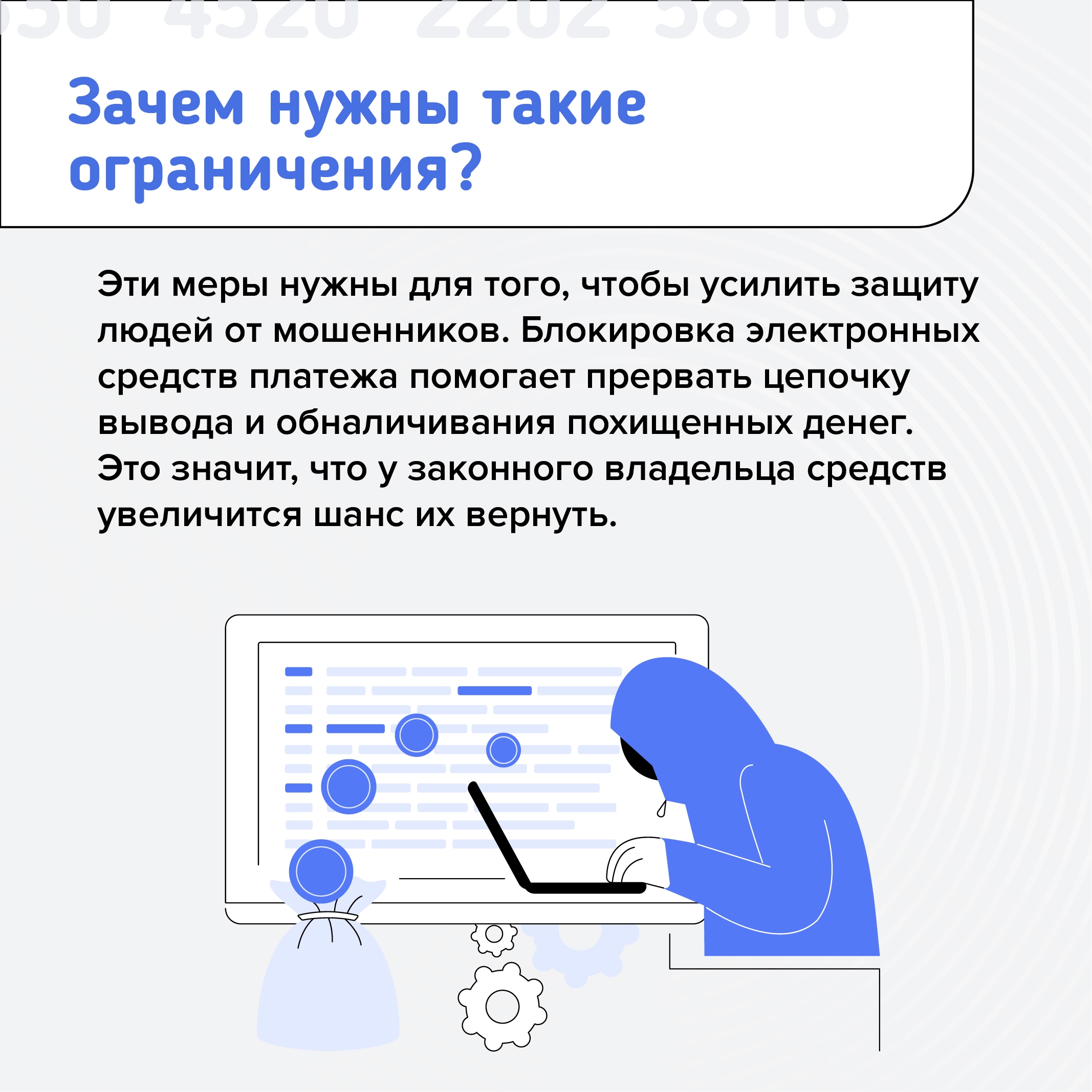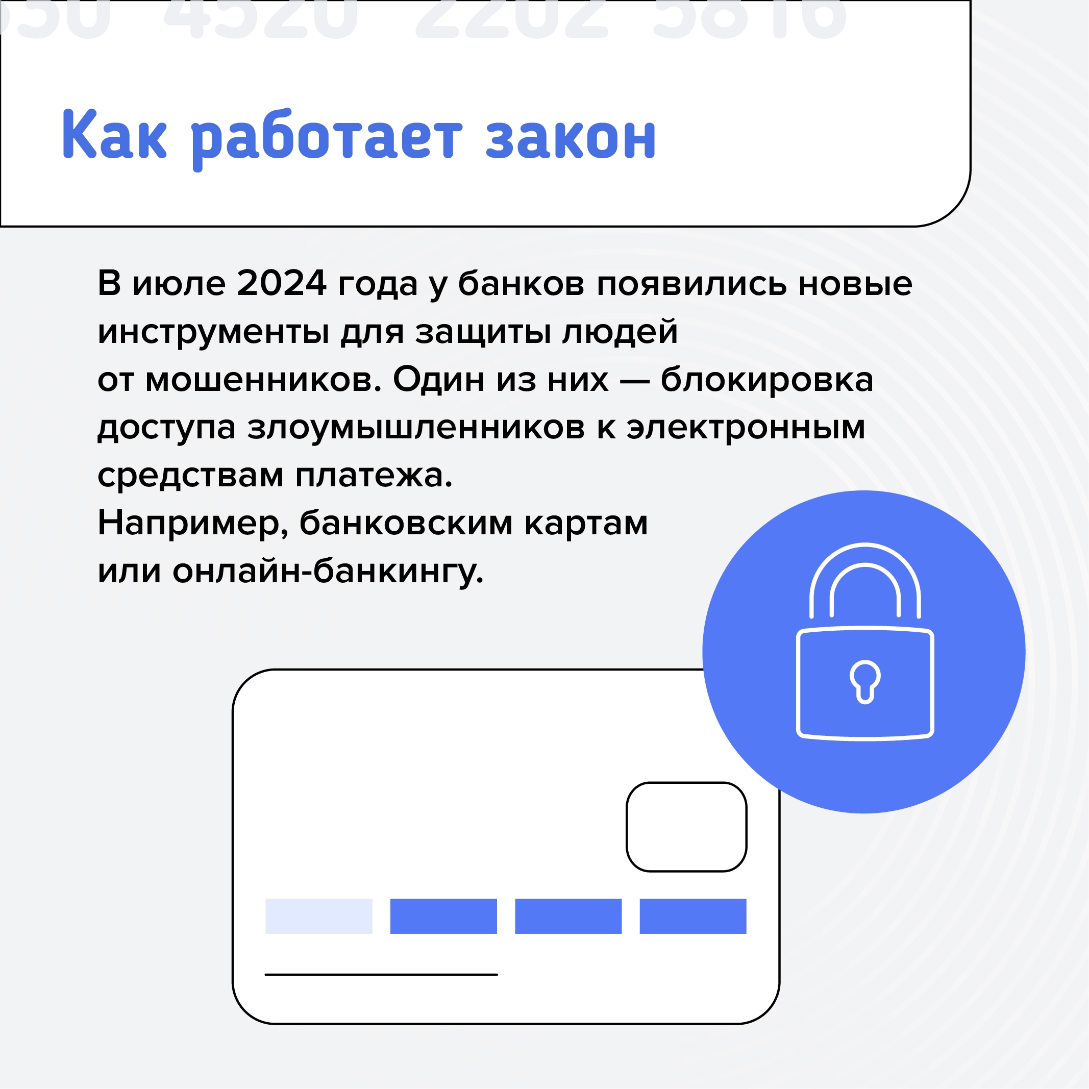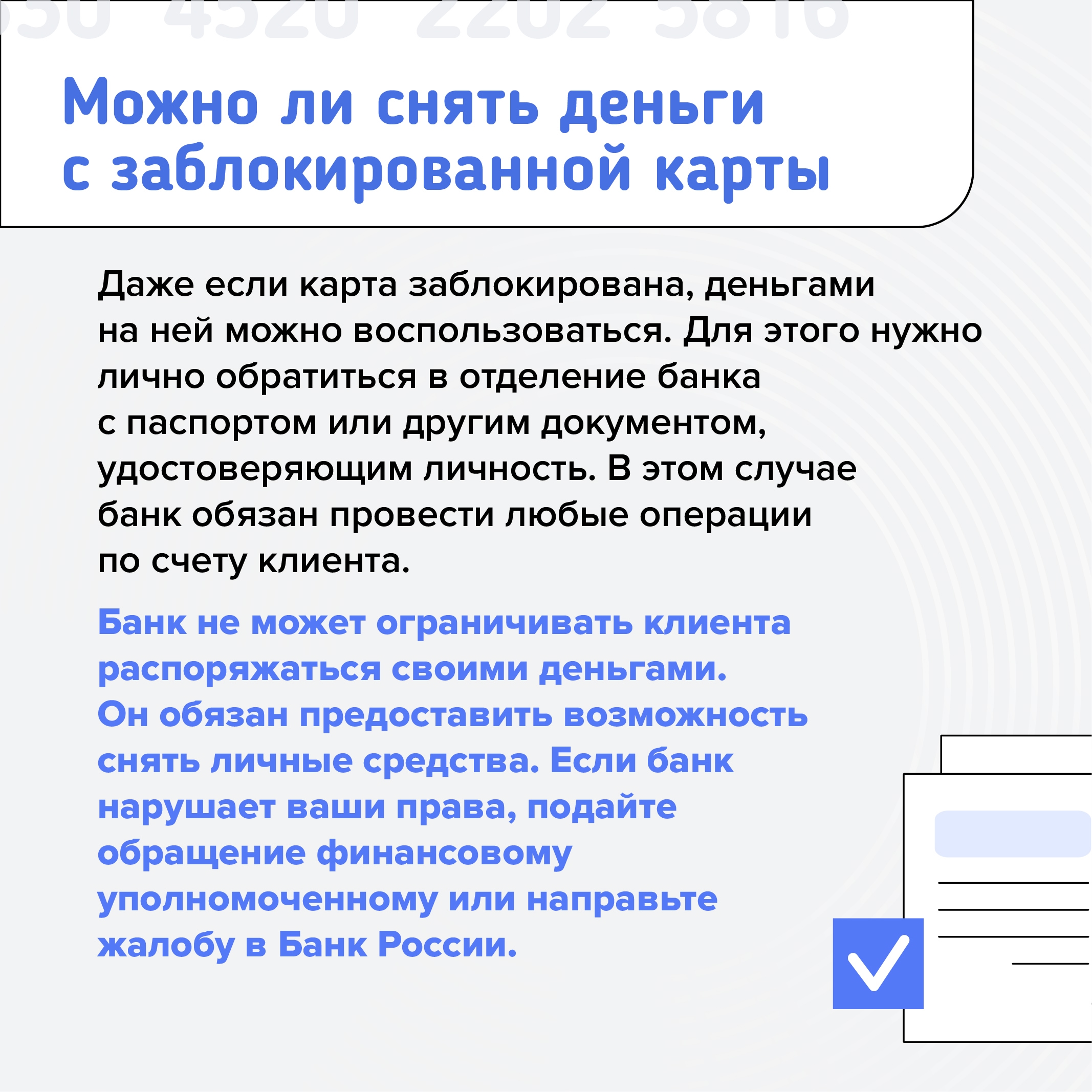 Для борьбы с мошенничеством банк может на время заблокировать карту или возможность перевода денег. Такое право дает 161-ФЗ РФ. Причины могут быть разными: это и проблемы, связанные с налогами, и попадание в базу дропов, и подозрения по «антиотмывочному» закону.