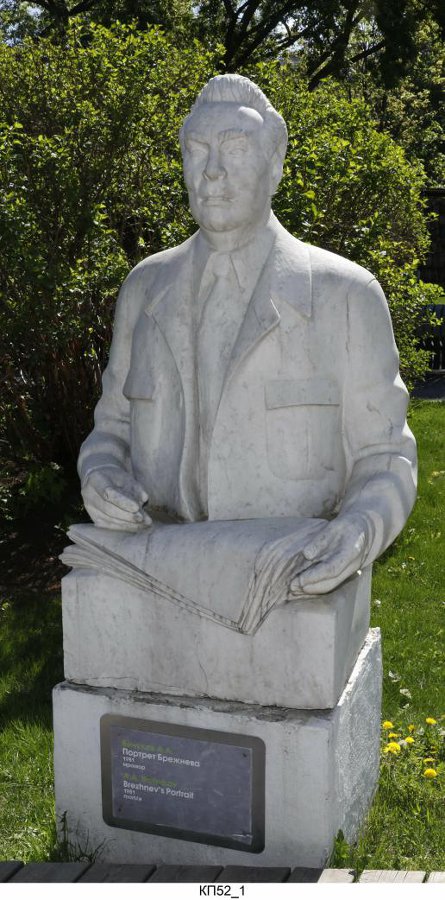 Один из первых посмертных памятников Брежневу появился у его могилы возле Кремлевской стены. Скромный гранитный бюст показывает Леонида Ильича в самом расцвете его деятельности в конце 1960-х.